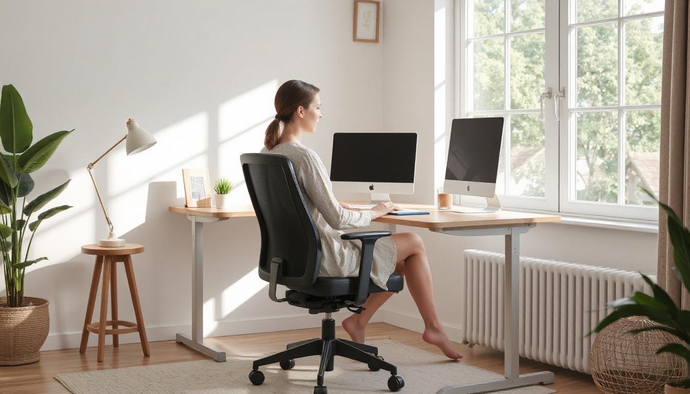 Your chair and desk are the foundation of a productive workspace. Choose an ergonomic chair that supports your back and helps you sit upright for long hours. A height-adjustable desk is ideal if you like to alternate between sitting and standing. Keep your desk clean and clutter-free, with just the essentials. Your computer, notebook, and maybe a plant or photo for motivation.